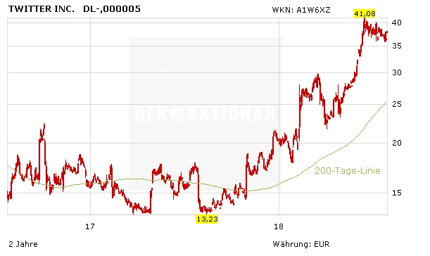 Für das soziale Netzwerk aus Kalifornien ging es in den vergangenen zwölf Monaten an der Börse steil bergauf. Von 14 US-Dollar ging es um gut 150 Prozent auf über 40 Dollar nach oben. Ob die Quartalszahlen heute für einen weiteren Schub sorgen, ist allerdings ungewiss.