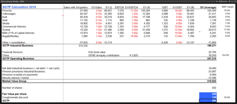 Volkswagen: Sum-of-the-parts Analyse, Quelle: Bloomberg Intelligence