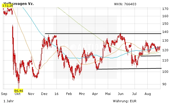 DER AKTIONÄR bleibt für die VW-Aktie optimistisch. Kurz nach der Einigung mit den Zulieferern hat das Papier wieder Boden gut gemacht. Was die Abgas-Affäre betrifft, sollten sich Anleger sicherlich in den nächsten Wochen noch auf eine gewisse Begleitmusik einstellen. Dennoch: DER AKTIONÄR geht davon aus, dass der Worst-Case im Zuge der Diesel-Affäre bereits vor mehreren Wochen eingepreist wurde, als die VW-Aktie unter die Marke von 100 Euro abtauchte. Letztendlich wird VW mit einem blauen Auge davon kommen. Wichtigster Eckpfeiler war der 15,3 Milliarden Dollar Vergleich mit hunderten geschädigten Diesel-Besitzern.