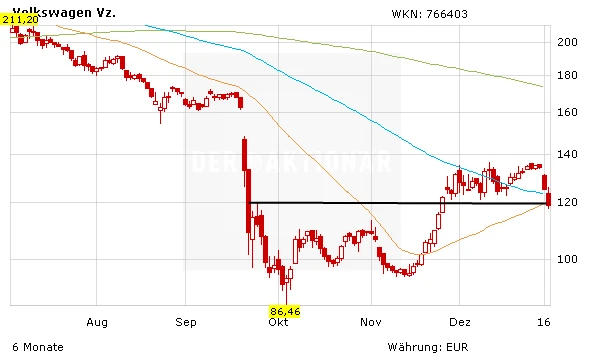 Es bleibt dabei: Die VW-Aktie wird in den nächsten Wochen von hoher Volatilität geprägt sein. Bei Kursen um 120 Euro könnte sich auf Sicht von 12 bis 24 Monaten ein Einsteig durchaus als sinnvoll erweisen. Anleger die etwas ruhiger schlafen wollen, setzen im Autosektor auf BMW oder Daimler. Beide Aktien sind zum Jahresstart deutlich unter Druck geraten. Eine Anfangsposition auf diesem Niveau sollte sich auszahlen!