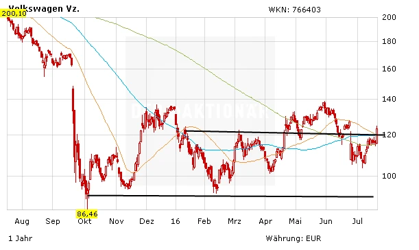 Auch DER AKTIONÄR hält die VW-Aktie auf dem aktuellen Niveau noch für spekulativ kaufenswert. Auf Sicht von 12 bis 24 Monaten besteht ein attraktives Chance-Risiko-Verhältnis. Derartige Meldungen zeigen: VW ist mit wenigen Handgriffen auf Rendite zu trimmen. Die Wenigsten hätten wohl für möglich gehalten, dass sich die kleinen Handgriffe bei VW so schnell in den Zahlen widerspiegeln. Anleger kaufen jedoch nicht in den Kurssprung hinein, sondern warten günstigere Kurse ab!