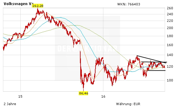 Von daher bleibt DER AKTIONÄR für die VW-Aktie weiterhin optimistisch. Anleger sollten sich aber auch in den kommenden Monaten noch auf eine gewisse Begleitmusik bezüglich des Abgas-Skandals einstellen. Große Auswirkungen auf den Kurs sollten diese Nachrichten allerdings nicht mehr haben. Die VW-Aktie pendelt in den letzten Wochen in einer Range zwischen 114 Euro und 127,50 Euro. Erst mit einem Ausbruch über das Hoch der Range, das Ende Juli markiert wurde, ergibt sich neues Kurspotenzial.