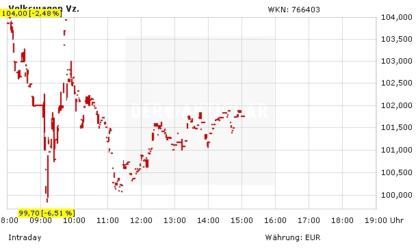 Die Anleger reagierten sofort und schickte die VW-Aktie erneut auf Talfahrt. Das Papier notierte am Dienstag gegen 18 Uhr noch bei knapp 110 Euro. Am Mittwoch wurde die Aktie bis auf 102 Euro zurecht gestutzt. Die Ungereimtheiten rund um die CO2-Werte und den Spritverbrauch könnten einen weitaus stärkeren Einfluss auf die Absatzzahlen von VW haben, schrieb Analyst Sascha Gommel von der Commerzbank. "Er betrifft die Autobesitzer mehr als der Diesel-Skandal."