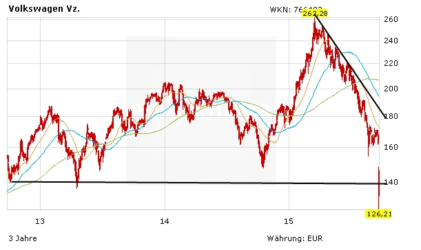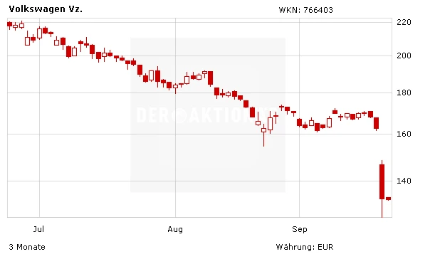 Festgelegt hat sich Analyst Philippe Houchois von der Schweizer Großbank UBS. Er bleibt bei seiner Kaufempfehlung für die VW-Aktie. Das Kursziel hat er von 300 auf 290 Euro gesenkt. Der Imageschaden für den Autokonzern sei groß, die finanziellen Folgen bislang aber noch unklar, schrieb Houchois in einer Studie. Trotz kurzfristiger Befürchtungen schätze er die Aktie weiterhin positiv ein. Denn VW sei einer der wenigen Autobauer mit bedeutendem Ergebnis- und Kapitalpotenzial.