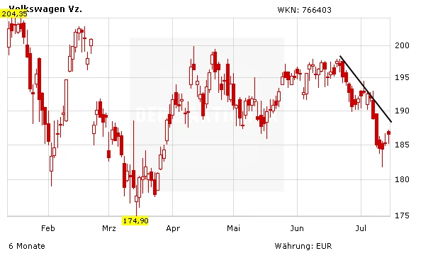 Aus charttechnischer Sicht scheint die Volkswagen-Aktie den Unterstützungsbereich von 178 bis 182 Euro verteidigen zu können. Anleger bleiben deswegen weiter investiert und sichern ihre Position mit einem Stopp bei 155 Euro ab.
