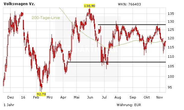 Die Situation bei VW bleibt problematisch. Die neuen Manipulationsvorwürfe und mögliche Handelshemmnisse in den USA haben die Aktie wieder unter die 120-Euro-Marke gedrückt. Zudem dürfte die Volatilität hoch bleiben. Risikoaverse Anleger sollten deshalb einen Bogen um VW machen. Für Mutige bleiben die Abstauberlimits bei 114,90 Euro und 107,00 Euro im Markt. Investierte Anleger beachten den Stoppkurs bei 98 Euro.