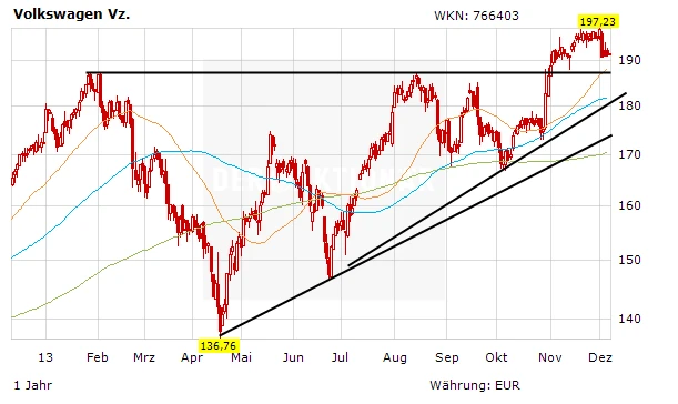 Der Volkswagen-Konzern hatte die US-Verkäufe von 2009 bis 2012 zwar verdoppeln können, im April endete jedoch der Lauf. VW ist bei den beliebten Geländewagen schwach aufgestellt und bei Pick-up-Trucks gar nicht vertreten. Diese machen etwa die Hälfte aller US-Verkäufe aus. Die wichtigsten VW-Modelle sind die Limousinen Jetta und Passat. Spitze im VW-Konzern ist lediglich die Tochter Audi. Der Premium-Hersteller knackte schon nach elf Monaten den Jahresabsatz aus 2012. Im November setzte das Unternehmen 13.636 Wagen ab und damit 13 Prozent mehr als vor einem Jahr.