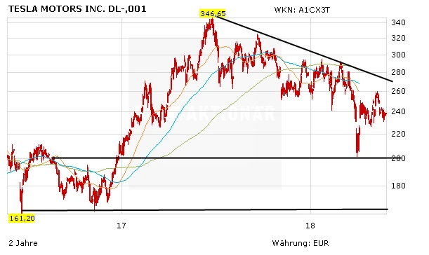 Elon Musk kritisiert lieber die Schar der Analysten für ihre „unprofessionellen“ Fragen. Es gibt mehr und mehr Zweifel am hochgelobten Elektroautopionier. Sogar Dauer-Bulle Adam Jones von Morgan Stanley hat das Kursziel für Tesla von 376 auf 291 Dollar gesenkt. Vom Gros der Analysten wird 2019 mittlerweile ein Verlust erwartet. Die Probleme beim Bau des Model 3 seien nicht schnell lösbar und „strukturell“.