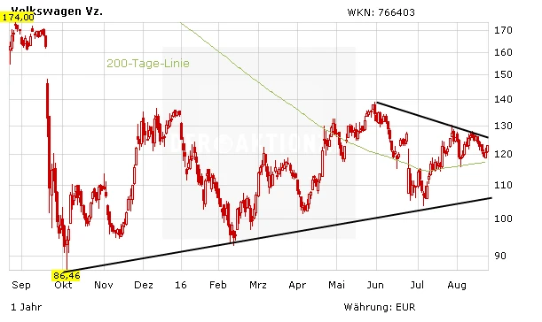 Der Produktionsausfall war nicht erfreulich für VW, dürfte aber keine großen Folgen für das Gesamtjahresergebnis haben. Nach der Einigung sollte der Weg für die Aktie wieder nach oben führen. Anleger sollten mögliche Rücksetzer noch als Einstiegschance nutzen. Auf Sicht von zwölf Monaten bietet die Aktie ein attraktives Chance-Risiko-Verhältnis. Die Volatilität dürfte aber hoch bleiben.
