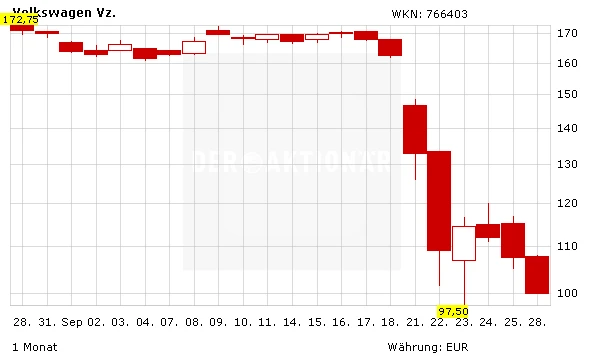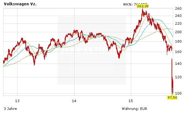 Die VW-Aktie kommt an Montag erneut stark unter Druck. Gut möglich, dass das Tief vom Mittwoch bei rund 95 Euro noch einmal getestet wird. Anleger mit sehr guten Nerven versuchen sich für die nächsten Monate zu positionieren und einen guten Durchschnittskurs zu bekommen. Gut möglich, dass die VW-Aktie den worst-case bereits eingepreist hat. Das Tief werden Anleger ohnehin nicht erwischen. Sinn macht es hier, mit verschiedenen Kauflimits einen guten Durchschnittskurs zu erreichen und die Aktie dann zwölf bis 18 Monate liegen zu lassen. Mehr zum Thema Volkswagen lesen Sie in der aktuellen Ausgabe von DER AKTIONÄR.