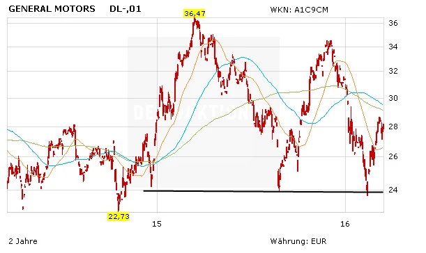 Die Credit Suisse hat GM auf ihre Liste der Top-Picks für 2016 und verweist dabei auf das niedrige KGV von knapp 6 sowie die hohe Dividendenrendite von rund 5 Prozent. Sicher ist GM eine Spekulation wert. Technisch sieht die Aktie gut aus. DER AKTIONÄR bevorzugt allerdings weiterhin Daimler. Wer es etwas spekulativer mag, der setzt auf den fortschreitenden Turnaround von Peugeot.
