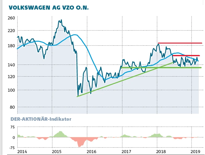 Vor Kurzem hat die VW-Aktie mit dem Sprung über die 200-Tage-Linie ein Kaufsignal generiert. Die Marke konnte allerdings nicht verteidigt werden. Aktuell notiert die Aktie knapp darunter. Gelingt eine nachhaltige Überwindung, können Anleger auf eine weitere Erholung spekulieren.