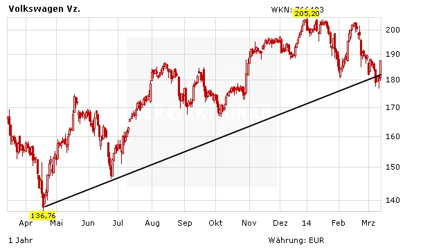 Auch das aktuelle Geschäft des Autobauers läuft gut. Gegenüber dem Vorjahr konnte der Konzernabsatz per Februar um 4,7 Prozent auf 1,47 Millionen verkaufte Autos gesteigert werden. Besonders gut läuft es nach wie vor in China. Im Vergleich zum Vorjahr wurde der Gewinn in China um 17 Prozent auf rund 4,3 Milliarden Euro gesteigert. Dies entspricht bei einem EBIT von 11,67 Milliarden Euro bereits mehr als einem Drittel des Konzerngewinns.