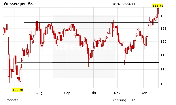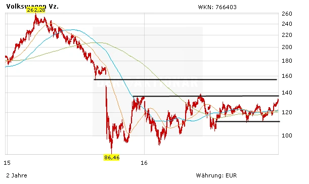 DER AKTIONÄR geht davon aus, dass hinsichtlich des Abgas-Skandals in den USA am Dienstagabend endlich eine Lösung präsentiert wird. Die VW-Aktie zumindest zeigte sich bereits in den letzten Tagen erholt, wobei das Papier nicht ganz so stark zulegen konnte wie BMW oder Daimler. Mit dem überwinden der horizontalen Widerstandslinie bei 128 Euro hat die VW-Aktie dennoch ein neues Kaufsignal signalisiert. Wird auch das Hoch aus dem Monat Mai 2016 bei 138 Euro aus dem Markt genommen, wäre der Weg sogar bis knapp 150 Euro frei.