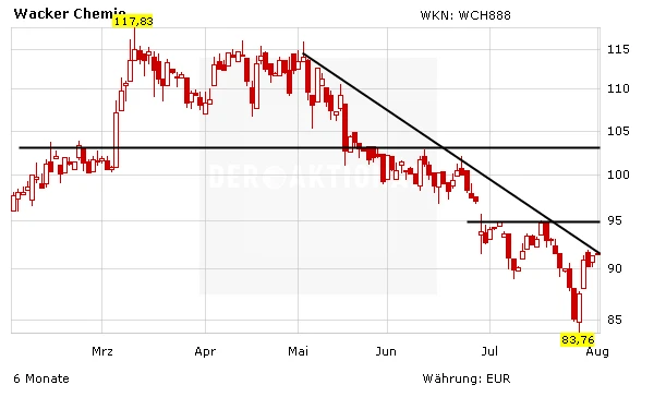 Die Wacker-Aktie reagierte positiv auf die veröffentlichten Zahlen. Vorbörslich legte der Kurs um über ein Prozent zu. Die nächsten Widerstände liegen bei 95 und 103 Euro.