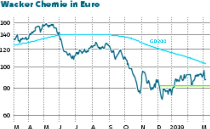 Ähnlich wie bei Siltronic scheint die Prognose des Wacker Chemie-Vorstands recht konservativ. Daher könnte sich auch hier die Kursreaktion als übertrieben herausstellen – insbesondere wenn es im Jahresverlauf zu einer Belebung der Polysiliciumpreise kommen sollte. Daneben setzt Wacker Chemie auf eine gute Entwicklung im Chemiegeschäft. So war 2018 etwa die Silikon-Sparte, die auch Dicht- und Schmiermittel für die Bau- und Autoindustrie herstellt, stark gewachsen. In der Polymer-Sparte für Bindemittel und Lackharze war der Umsatz im vergangenen Jahr zwar noch leicht gestiegen, allerdings hatten höhere Rohstoffkosten auf den Gewinn gedrückt.