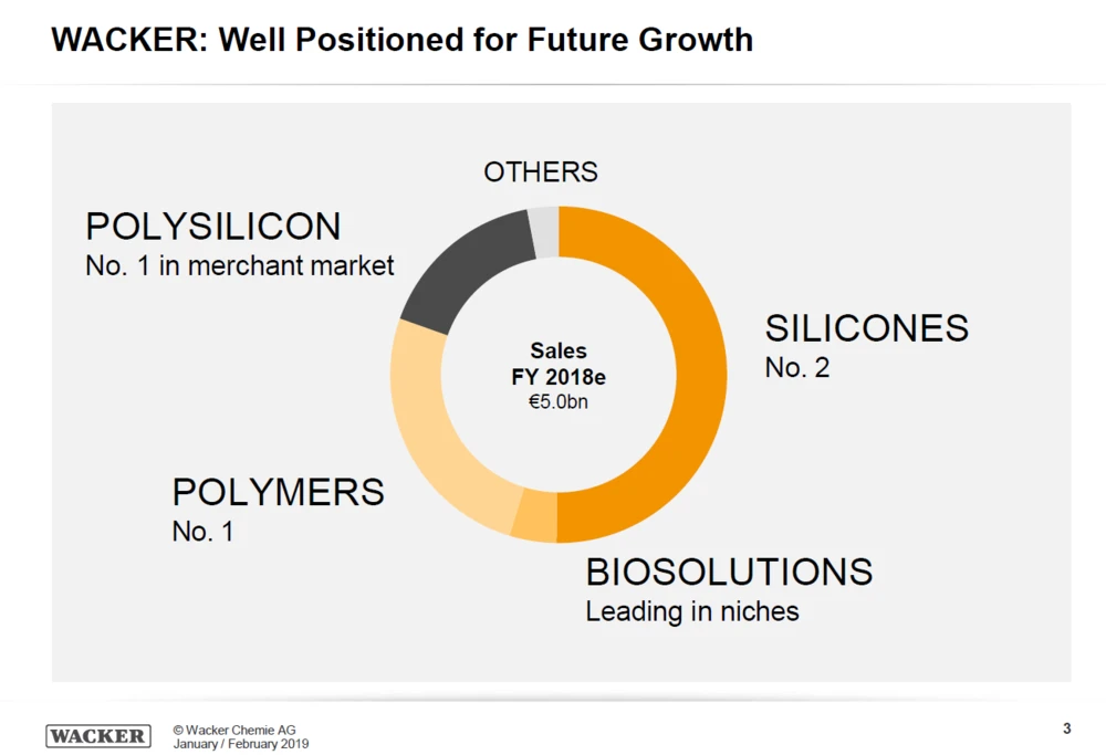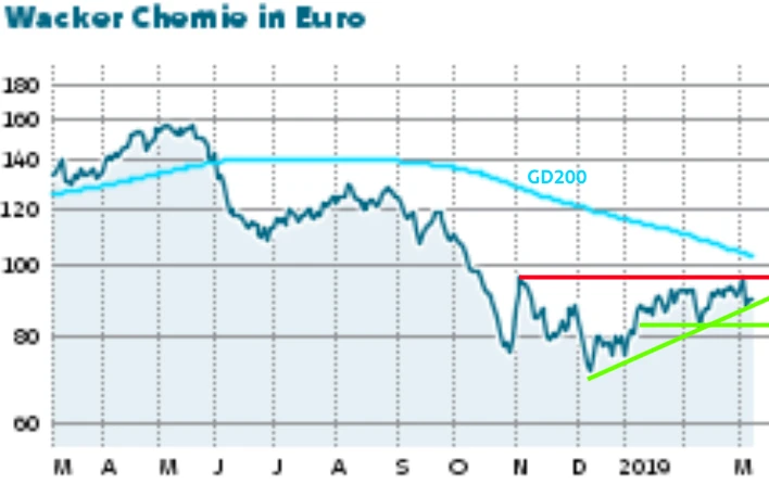 Es ist zwar noch unklar, ob das von Dauer ist. DER AKTIONÄR setzt allerdings weiter auf eine Erholung der Preise. Damit könnte sich der Ausblick als zu konservativ erweisen – zumal der Trend in den anderen Geschäftsbereichen weiter nach oben zeigen dürfte. So war 2018 etwa die Silikon-Sparte, die auch Dicht- und Schmiermittel für die Bau- und Autoindustrie herstellt, stark gewachsen. In der Polymer-Sparte für Bindemittel und Lackharze war der Umsatz im vergangenen Jahr zwar noch leicht gestiegen, allerdings hatten höhere Rohstoffkosten auf den Gewinn gedrückt.