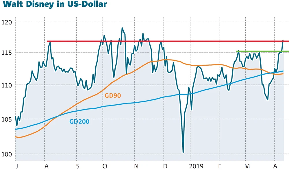 Morgen wird es spannend: Walt Disney dürfte auf seinem Investorentag Details zu seinem Streamingdienst Disney+ verraten. Der Dienst könnte ein Mega-Coup für den Konzern werden. Derweil läuft das Kinogeschäft auf Hochtouren. Die Aktie hat einen bedeutenden Widerstand überwunden. Wann kommt ein neues Rekordhoch?