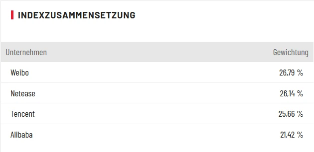 Seit Jahresanfang hat der WANT-Index vierzehn Prozent zugelegt. Best Performer im Index ist aktuell Weibo mit plus 24 Prozent, gefolgt von NetEase plus 15 Prozent, Tencent plus 11 Prozent und Alibaba plus 7 Prozent.