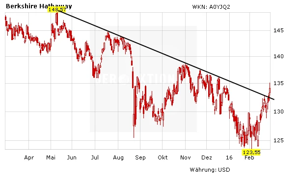 Warren Buffetts Investmentholding Berkshire Hathaway hat starke Zahlen für 2015 vorgelegt – und die Anleger greifen weiterhin bei der Aktie zu. Der seit Mai 2015 gültige Abwärtstrend ist nun Geschichte – die Zeichen stehen klar auf weitere Kursgewinne.