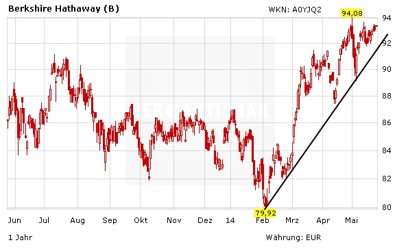 Zehn Prozent im Jahr im Schnitt – das kann sich immer noch sehen lassen. Außerdem gibt es bei Berkshire Hathaway eine Art Versicherung: Immer wenn die Aktie 20 Prozent über dem Buchwert notiert, kauft Buffett Berkshire-Aktien zurück. Fazit: Buffett, das Genie, darf in keinem Portfolio fehlen. Kaufen, Schlaftabletten nehmen, aufwachen und über die Performance jubeln.