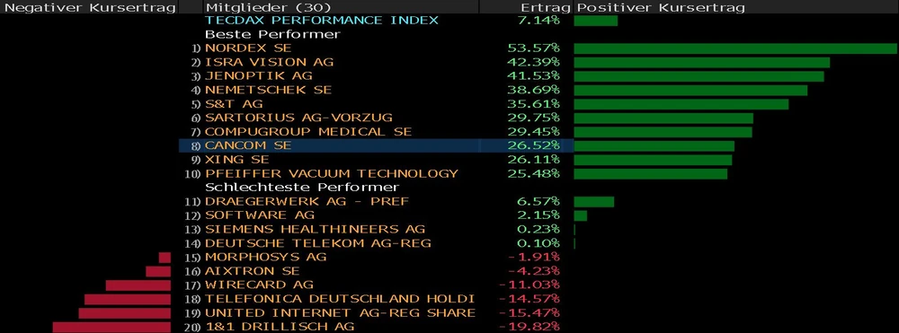 Die Aktie des IT-Dienstleisters Cancom kann in den vergangenen Monaten knapp 40 Prozent zulegen und zählt mit 26,5 Prozent Kursgewinn seit Jahresbeginn zu den Top-Performern im TecDAX. Der Chart steht kurz vor dem Bruch der 200-Tage-Linie. Höchste Zeit sich einen Überblick zu verschaffen, ob die Aktie noch Luft nach oben hat.