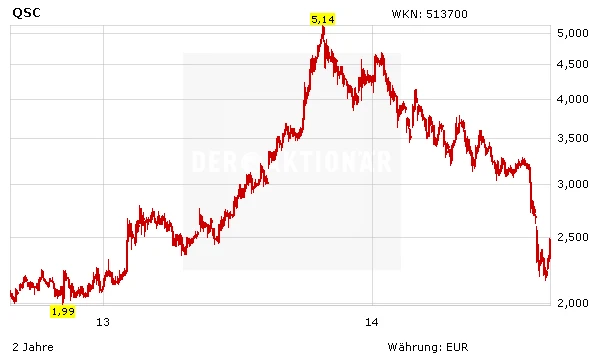 Auf Platz 2 der Tagesgewinner im TecDAX rangiert die Aktie des IT-Anbieters QSC. Fast sieben Prozent auf 2,48 Euro ging es nach oben. Nach den starken Kursverlusten der vergangenen Monate dürften einige Anleger hier auf eine Erholung spekulieren. Die Aktie von QSC befindet sich seit Ende 2013 im Abwärtstrend. Dieser hatte sich zuletzt sogar noch verschärft, nachdem das Unternehmen schwache Zahlen gemeldet hatte. Im zweiten Quartal fuhr die Firma wegen einer enttäuschenden Entwicklung im erklärten Wachstumsbereich mit Informations- und Kommunikationstechnik einen Verlust ein und senkte die Jahresprognosen. Die traditionelle Achillesferse des Geschäftskundenspezialisten mit DSL- und Sprachdiensten schnitt dabei trotz schärferer Regulierung sogar etwas besser ab als gedacht. In den drei Monaten bis Ende Juni schrieb QSC unter dem Strich ein Minus von 3,9 Millionen Euro nach einem Gewinn von 5,2 Millionen Euro vor einem Jahr. Angesichts der unbefriedigenden Ertragslage im abgelaufenen zweiten Quartal startet QSC ein Programm zur Effizienzsteigerung. Das Unternehmen will die Schlagkraft erhöhen. QSC will unter anderem künftig eine steigende Nachfrage in einzelnen Geschäftsfeldern primär mit bestehendem Personal bedienen. Die Aktie eignet sich nur für risikobereite Anleger.