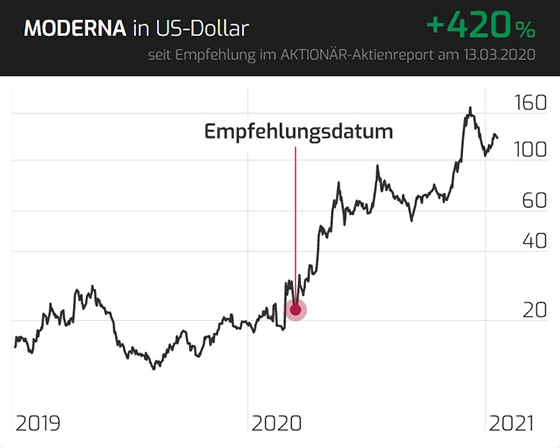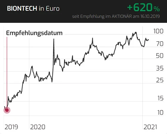Die Erwartungen in die Biotechnologie-Branche sind nach dem Jahr 2020 so hoch wie noch nie, da sie mehr denn je im öffentlichen Fokus steht. Jeder Anleger kennt inzwischen Werte wie BioNTech und Moderna und wünscht sich wohl auch, mehr in diese investiert zu haben. Denn diese haben seit der Empfehlung durch die Biotech-Experten Michel Doepke und Marion Schlegel in DER AKTIONÄR enorm zugelegt. Bereits lange vor der Suche nach dem Impfstoff wurde BioNTech am 16. Oktober 2019 empfohlen und hat seitdem unglaubliche 620 Prozent Rendite für die Investoren eingefahren. Ähnlich erfolgreich performte Moderna nach Empfehlung im März 2020. Der Wert verzeichnet in nicht einmal einem Jahr ein Plus von über 420 Prozent.