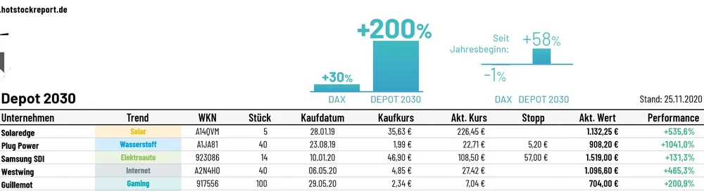 Beschleunigt hat sich zuletzt der Kursanstieg der Plug-Power-Aktie. Nun wurde die magische Marke von 1.000 Prozent seit Depot-2030-Aufnahme überschritten. Wie nun mit dem Tenbagger zu verfahren ist und welche neuen Chance es gibt, sehen Sie im neuen AKTIONÄR TV: