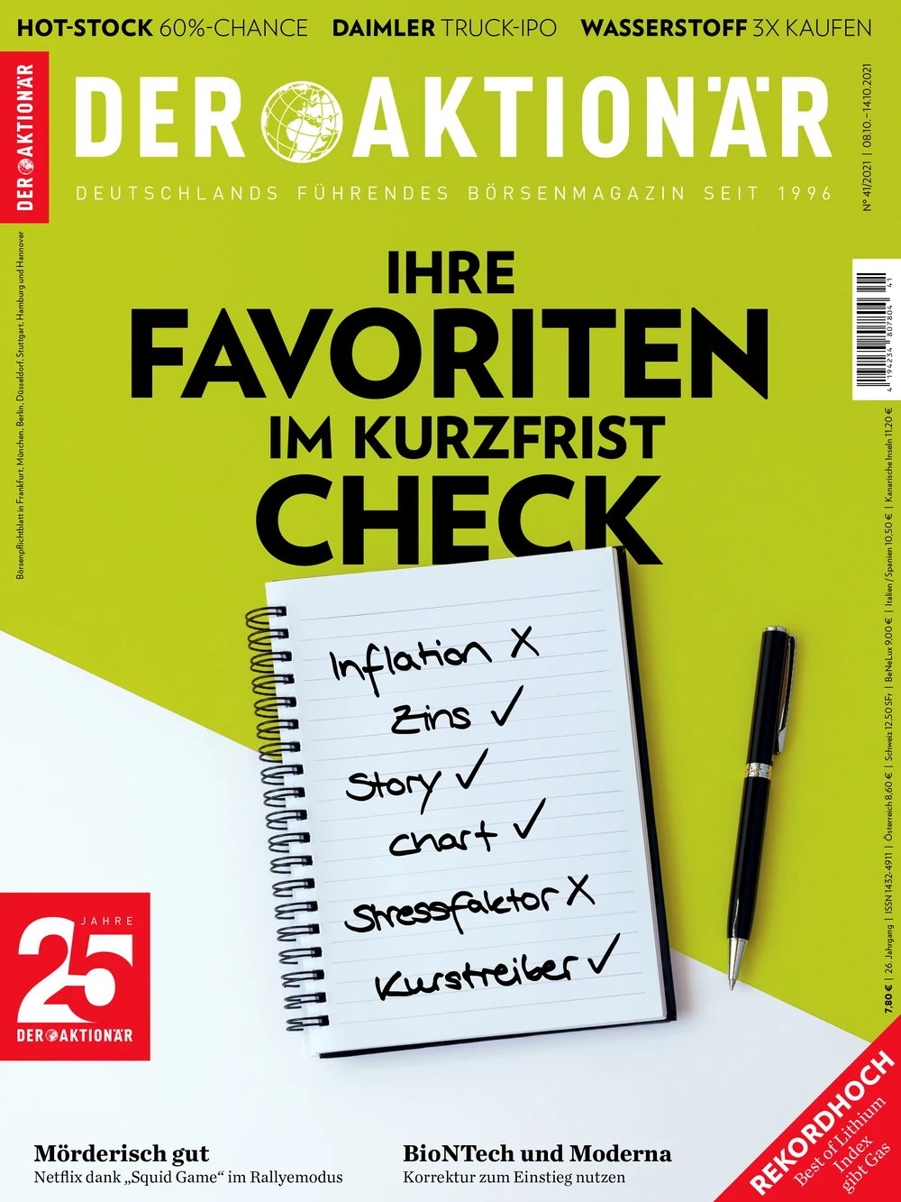 Der Start in den Oktober fiel bisher zwar recht stürmisch aus. Kein Wunder: Die Reihe der potenziellen globalen Krisenherde hat es in sich. Mit den richtigen Nebenwerten im Depot können Anleger allerdings auch im Schlussquartal 2021 eine ordentliche Rendite erzielen. (S. 40)