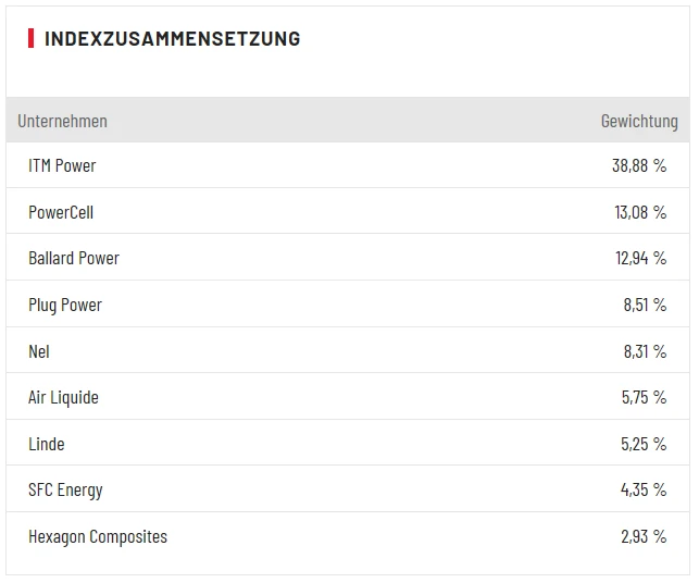 Doch nicht nur die Aktie von ITM Power befindet sich im heutigen Handel im Höhenflug. Auch der Brennstoffzellen-Entwickler PowerCell kann 5,5 Prozent an der Heimatbörse in Stockholm zulegen. Der Elektrolyse-Spezialist Nel – gemessen an der Gewichtung im Index auf Platz 5 – gewinnt sogar 6,5 Prozent an der Osloer Börse zu.