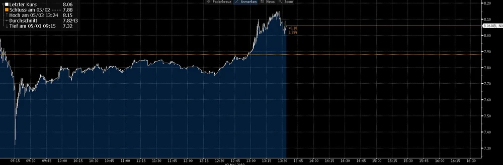 In den letzten Handelstagen schaltete die Nel-Aktie in den Rallye-Modus. Eine Korrektur ist mittlerweile überfällig, im Tagesverlauf konnte die Aktie neue Höchstände markieren. Neueinsteiger warten einen klaren Kursrücksetzer ab.