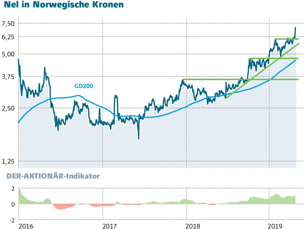 Nach einer bullishen Analyse von Norne Securities ist die Nel-Aktie auf ein neues Rekordhoch gesprungen. Neueinsteiger sollten in jedem Fall eine charttechnische Abkühlung in Richtung Aufwärtstrend abwarten. Investierte Anleger halten an den Papieren fest, dürfen jedoch nie den spekulativen Charakter des Papiers aus den Augen verlieren.