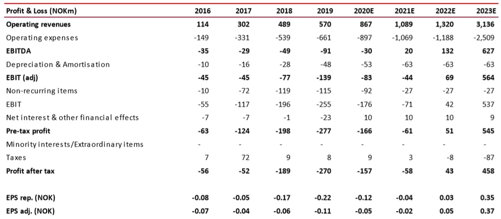 Auf EBITDA-Basis rechnet Norne Securities ab 2021 mit schwarzen Zahlen. Ausgehend von 570 Millionen Kronen Umsatz im Jahr 2019 soll sich dieser bis 2023 auf 3,14 Milliarden Kronen vervielfachen. In dieser Schätzung dürften auch potenzielle Großaufträge von Nikola Motor mit einkalkuliert sein. Das US-Start-up zählt zu den wichtigsten Nel-Kunden und will den Sprung an die Börse schaffen, wie vor Kurzem bekanntgegeben wurde.