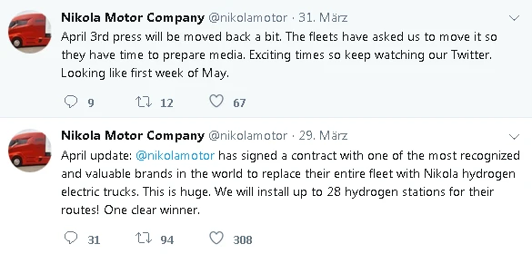 Nel-Partner Nikola Motor hat einen Großauftrag an Land gezogen. Um welchen Konzern es sich handelt, wird das Start-Up im Mai bekanntgeben. Gut möglich, dass es sich um Amazon oder Wal-Mart handelt.