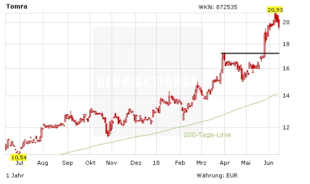 Die Aktie von Tomra Systems – ein Spezialist für Sammel- und Sortierlösungen – konnte seit der Empfehlung über 20 Prozent zulegen. Dies hat im Wesentlichen zwei Gründe: Zum einen hat Großbritannien ein Gesetz zum Sammeln von Plastikflaschen auf den Weg gebracht. Zum anderen verfolgt die EU-Komission das Ziel, bis 2025 90 Prozent aller Flaschen aus Kunststoff einzusammeln. Seitdem kennt die Aktie kein Halten mehr. Die große Frage: Jetzt noch einsteigen? Denn das Kurs-Gewinn-Verhältnis beträgt knackige 40 für 2018. Extrem sportlich, ohne Frage. Doch die langfristigen Perspektiven sind und bleiben für Tomra überragend. Bei Kursschwäche einsammeln!