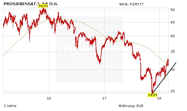 Hierzulande ist die Aktie von ProSiebenSat.1 mit einem Abschlag von über vier Prozent Schlusslicht im DAX. Zwar hatte Ex-Vorstandschef Thomas Ebeling bei seinem Abgang in der Vorwoche noch verkündet, dass der Konzern inzwischen 51 Prozent des Umsatzes außerhalb des TV-Werbegeschäfts verdient, dennoch kochen nun wieder Sorgen um das wichtige Segment hoch. Im November hatten ProSieben deswegen die Prognose senken müssen, was den Kurs auf ein Mehrjahrestief gedrückt hat.
