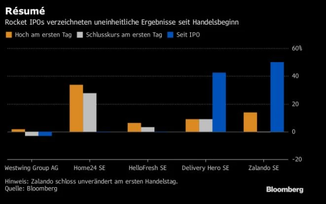 Für Rocket Internet, deren Anteil an Westwing im Zuge des Börsengangs von 30 Prozent auf rund 23 Prozent verwässert wurde, ist das ein Novum: Westwing ist die erste Beteiligung der Start-up-Schmiede, die ihren ersten Handelstag im Frankfurt mit Verlusten beendet hat – Delivery Hero, HelloFresh und Home24 haben beim Börsendebüt teils kräftige Gewinne verbucht, Zalando ging immerhin unverändert aus dem Handel.