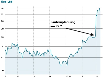 "...aber vielleicht bei Sea, einer der spannendsten New-Economy-Storys in Südostasien. Die Region umfasst Malaysia, Taiwan, Vietnam, Thailand, die Philippienen, Singapur und Indonesien. Was den Handel über das Internet betrifft, gilt insbesondere Indonesien als Motor hinter der zuletzt stürmischen Entwicklung."