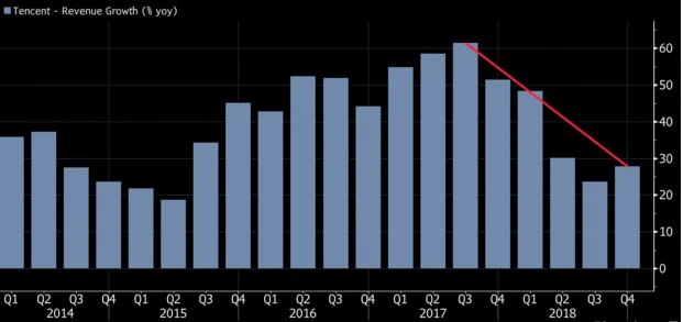 Tencent meldete für Q4 trotz leicht auf 12,7 Milliarden Dollar gestiegener Umsätze einen Gewinneinbruch von 32 Prozent auf 2,1 Milliarden Dollar und verfehlte damit die Schätzungen der Analysten um gut 15 Prozent.