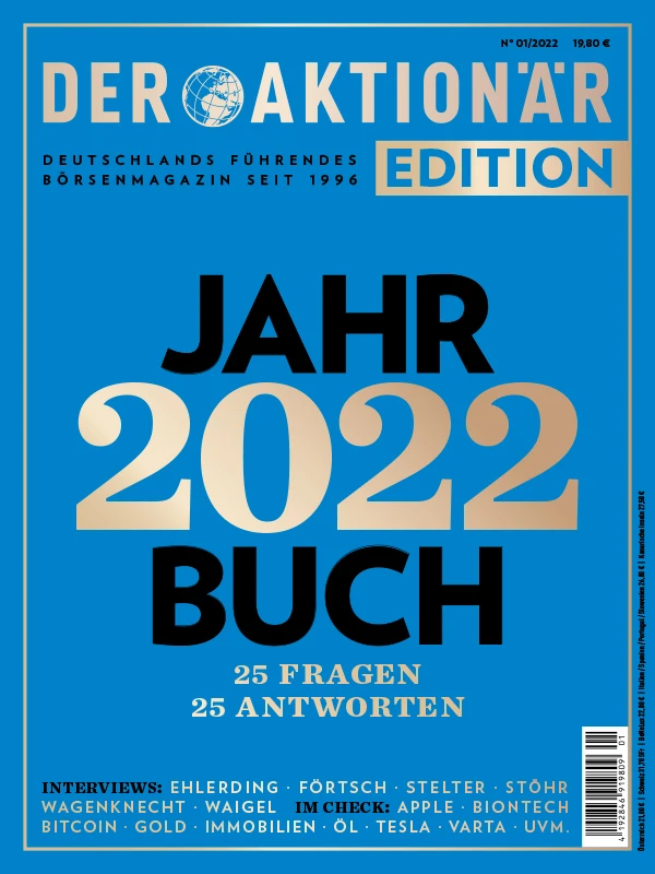 Diese und weitere drängende Fragen stellen sich viele Anleger für das Jahr 2022. DER AKTIONÄR gibt jetzt im neuen Jahrbuch 2022 die Antworten auf insgesamt 25 Fragen, die die Börsenwelt im neuen Jahr bewegen. Mehr Wissen, mehr Tipps, mehr Rendite, gebündelt auf 290 Seiten – so kann das neue Börsenjahr kommen.