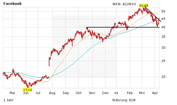 Ganz anders jedoch das Bild bei Facebook. Das auf den ersten Blick hohe KGV relativiert sich durch die extrem gute Positionierung und das zu großen Teilen noch ungenutzte Gewinnpotenzial. Facebook dürfte in den nächsten Jahren durch neue Werbeformen (Videowerbung) und eine immer intensivere Nutzung der Seite den Umsatz pro Kunde weiter erhöhen. Zudem besteht theoretisch die Chance durch eine geringe Gebühr den Konzernumsatz auf einen Schlag zu verdreifachen.