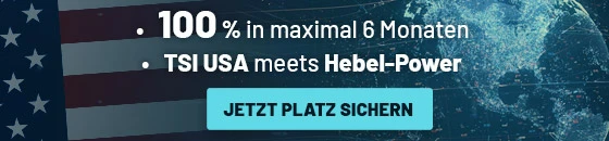 Die Zeit ist gekommen für Runde 5 des heiß ersehnten "TSI USA meets Hebel-Power"-Projekts. Das unschlagbare TSI-Prinzip trifft hier auf geballte Optionsschein-Power und startet das Rennen Richtung 100-Prozent-Marke. Dieses Ziel konnte in der letzten Runde in nur elf Wochen erreicht werden. Mit dem Kauf des Reports sichern Sie sich Ihr Ticket für die nächste Runde des exklusiven Optionsscheinprojekts mit acht einzigartigen Empfehlungen sowie einem ganz besonderen Geheimtipp für ambitionierte Anleger.