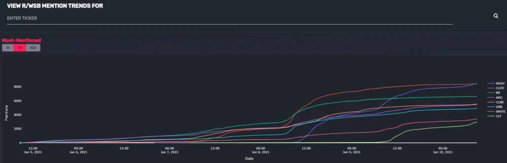 Während die Windeln.de-Aktie wie ein Stein fällt, taucht das Ticker-Symbol WISH des Online-Händlers Wish.com immer öfter im Reddit-Forum wallstreetbets auf und hat dort – gemessen an der Anzahl der Erwähnungen in den letzten sieben Tagen – den Spitzenplatz vor AMC, Gamestop und Clover Health erobert.