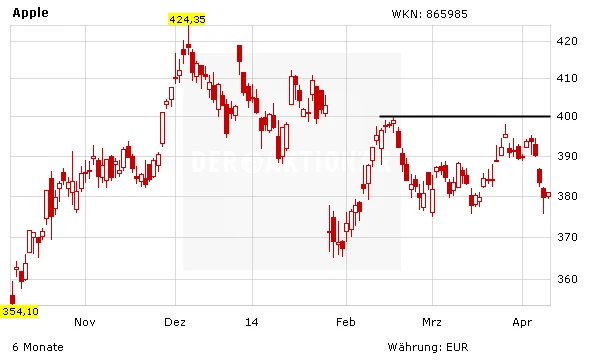 DER AKTIONÄR hält Apple jedoch weiterhin für extrem gut aufgestellt. Neben Smartphones dürfte der Konzern auch von neuen Apple-Produkten (iWatch, iTV) profitieren. Zudem ist die Aktie mit einem KGV von 13 für 2014 günstig bewertet. Bei einem Ausbruch über die 400 Euro sind neue Hochs wahrscheinlich.