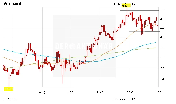 Mit den guten Meldungen im Rücken wird die Wirecard-Aktie weiter klettern. Das Papier sieht technisch vielversprechend aus. Das Allzeithoch bei 48,96 Euro ist greifbar nahe. Fakt ist: Die jüngste Übernahme des Payment-Geschäfts der Great Indian Retail Group sowie den sehr guten Aussichten werden die Wirecard-Aktie weiter antreiben. Wer investiert ist bleibt auf jeden Fall dabei. Nächster Halt: 55 Euro.