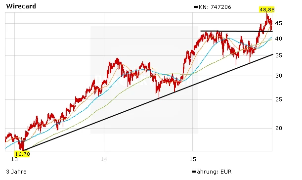 DER AKTIONÄR bleibt für Wirecard optimistisch. Die Aktie ist weiterhin Bestandteil des Aktien-Musterdepots. In den nächsten Wochen sollte das Papier einen erneuten Angriff auf das Allzeithoch bei 48,96 Euro nehmen. Die aktuellen Zahlen bestärken die positive Einschätzung.