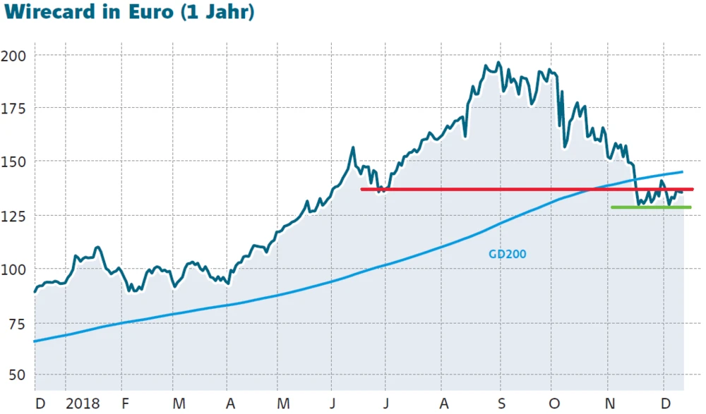 Die lobenden Worte können der Wirecard-Aktie allerdings keinen zusätzlichen Schwung verleihen, stattdessen muss sie ihre anfänglichen Gewinne im Tagesverlauf wieder vollständig abgeben. Damit setzt sich ein Muster fort, dass sich in den vergangenen Wochen schon mehrfach beobachten ließ: Seit Ende November gab es mehrere Erholungsversuche, die jedoch alle maximal zwei Tage anhielten, ehe es wieder bergab ging.