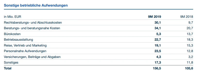 Die Vorwürfe der Financial Times und die juristischen Auseinandersetzungen schlagen sich allerdings auch an anderer Stelle im 9-Monats-Bericht nieder: Im Bereich „Sonstige betriebliche Aufwendungen“ haben sich die Rechtsberatungs- und Abschlusskosten im Jahresvergleich mehr als verdreifacht. Nach 9,7 Millionen Euro im Vorjahreszeitraum standen dort nun 30,1 Millionen Euro zu Buche.