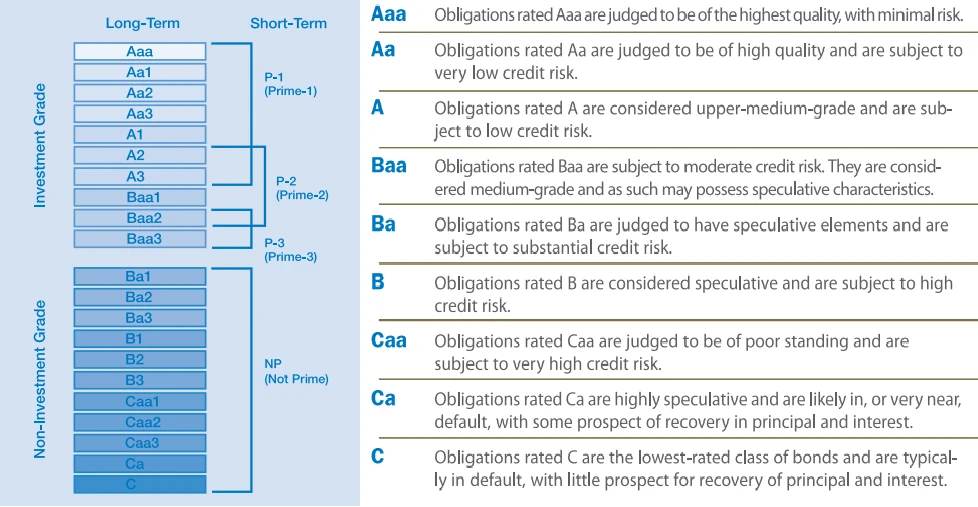 Laut der Financial Times hat die Ratingagentur Moody’s Wirecard und die Anleihe mit Baa3 bewertet. Dadurch wird die Anleihe gerade noch als "Investment Grade“ eingestuft (siehe Bild unten). Das bedeutet, dass die Nachfrage nach der Anleihe höher sein wird und Wirecard so leichter an Geld kommt.